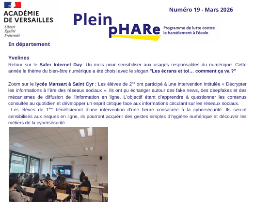 Leur action s’inscrit pleinement dans la dynamique de l’équipe pHARe, mobilisée au quotidien pour prévenir et lutter contre le harcèlement. (...)